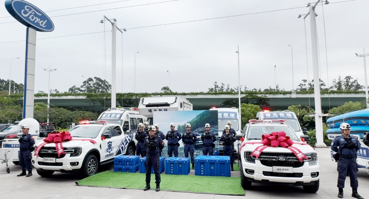 图1:福特纵横向曙光救援队捐赠交付福特游骑侠