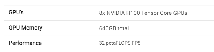 换算下来,7 亿元可以买到大概 250 台 DGX H100,里面是 2000 颗 H100 SXM,估算算力约为 8 个 E。