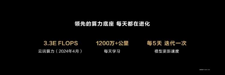 比如 4 月 11 日的鸿蒙智行春季发布会上,余承东表示,目前华为的云端训练算力,已经达到了 3.3EFLOPS;相比去年 11 月智界 S7 首次发布时公布的 2.8EFLOPS,又提升了约 20%。