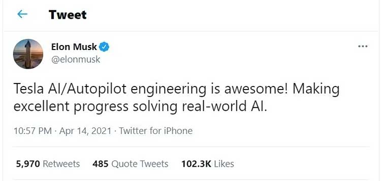当然马斯克给了个更广泛的语境「人工智能」,而不只是「自动驾驶」,但他还有另一句话:「自动驾驶就是真实世界里面的人工智能」。