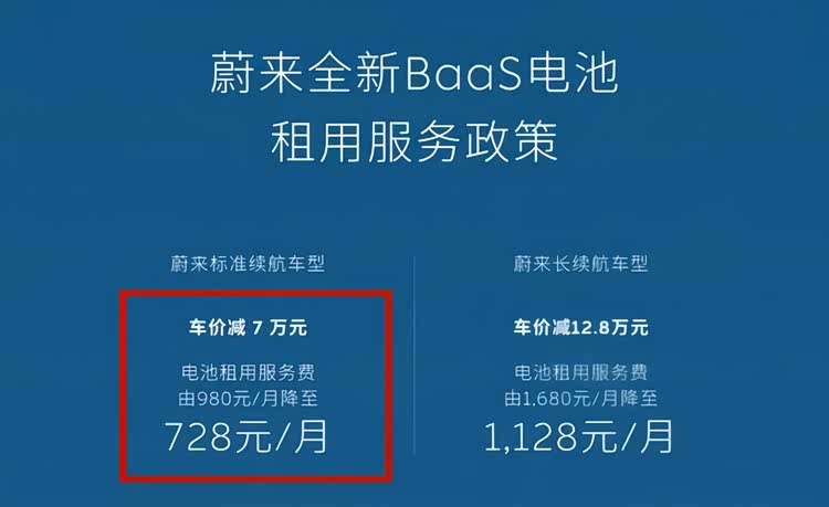 可有人会说,这车的电池成本怎么没有算进去,毕竟每个月要交电池费用,的确是这样的,但综合算下来,租电池的划算程度还算得上蛮高的,因为根据蔚来给出的方案,电池租金成本被降下来了,现在每个月租金是728元每个月,哪怕是100度的电池,也才1128元每个月,而且这是有优惠套餐的,车主只需要租满10个月,蔚来还送你两个月的电池。
