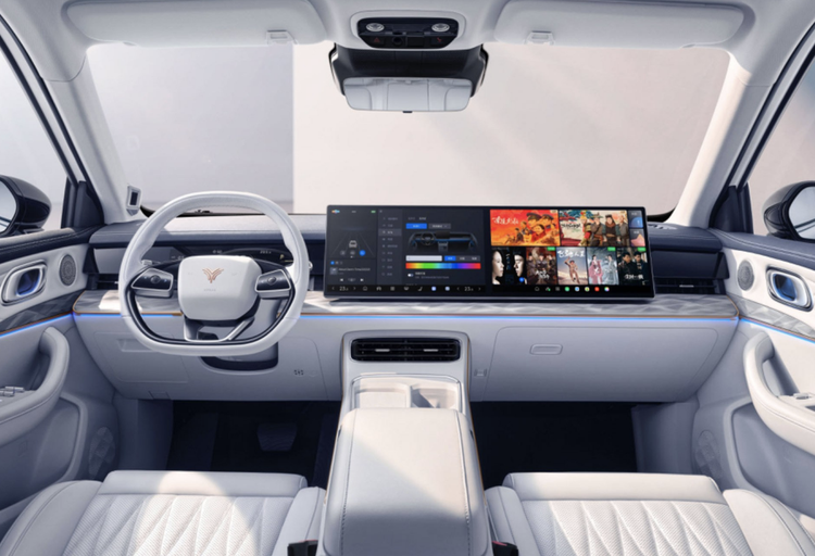 东风eπ008的内饰布局也有造车新势力车型的简约感,比如方向盘造型、双拼色的内饰用料等。而15.6英寸中控大屏的加入又让车内看起来更具科技属性,最重要的是大屏内部也加入了8155车机芯片。既然是对标理想L8的产品,冰箱彩电大沙发自然不能少,它在后排也配备了一块15.6英寸的吸顶屏、冰箱、零重力座椅等。续航层面,该车纯电版续航为636km,而且增程版综合续航可以达到1300km。
