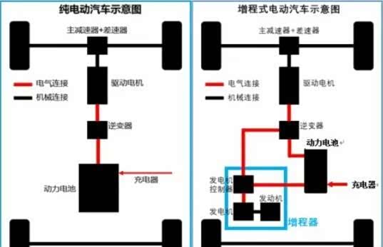 简单一点的说就是这种车在纯电动汽车的基础上再加装了一台发动机,当车辆的电量不足时,发动机开始运转给蓄电池供电,蓄电池再将电能传输给电机来驱动车辆行驶。严格意义来讲,这就是个混合动力的电动汽车的串联行驶,就是多了个发动机和发电机的组合,也就是增程式。