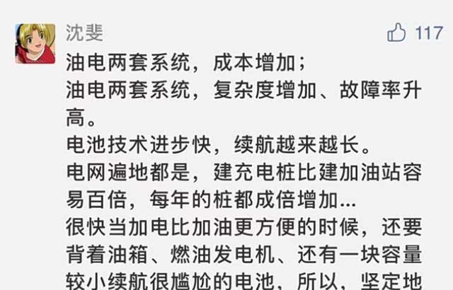 曾经的增程式电动车在网上可以说是是人人喊打,大众集团中国区CEO冯思翰也曾在公开场合表达自己的看法:“增程式电动车是最糟糕的方案”;蔚来汽车电源管理副总裁沈斐也发文称:“坚定地不看好增程式”。