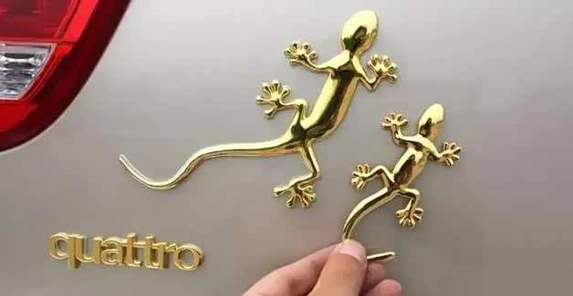 其实对很多车主来说,新车买回家都会精心装饰一番,比如给方向盘装上方向盘套,放一些精美的娃娃,或者装上座椅套、脚垫等等。而在车身外面,同样也会如此,比如贴上车膜和专属的标志。而在车尾贴壁虎的标志,其实是有一定寓意的,开始的时候,壁虎是作为一线豪华品牌奥迪四驱车型的专属标志。