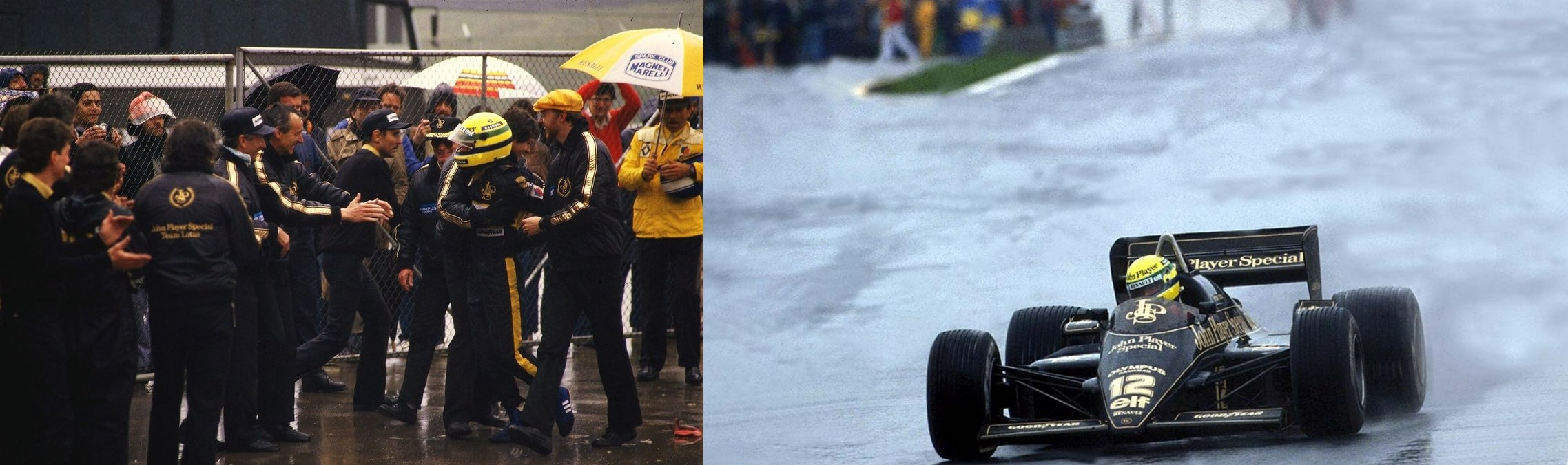 好在塞纳是沃尔带给莲花的一份礼物——他的到来算是给这支年迈颓废的车队打了一支强心剂。就在塞纳披上莲花战袍的第二站,1985年的葡萄牙站上,塞纳就取得了他职业生涯中的第一个杆位,并在正赛上将杆位变成了冠军奖杯。那场比赛大雨倾盆,塞纳以惊人的雨站能力让在场的所有人折服——他领先了第二名的法拉利车手超过了一分钟,套了除领奖台外所有车手的圈,不仅如此,塞纳的一套“帽子戏法”还创下了最快圈速。