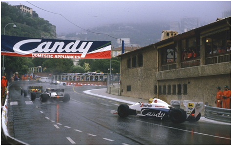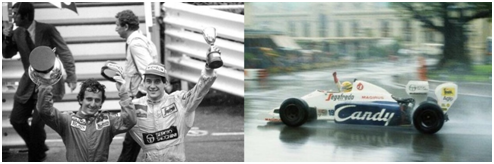 1984赛季的摩纳哥站在六月份举行,塞纳是第一次来到这条赛道,在周六的排位赛上他取得了第13名的位置,周日正赛大雨倾盆, 地中海周遭靓丽的风景已经不见踪影,摩纳哥的高层建筑也被浸没在水液滴凝结成的雾气中。在这样的比赛条件下,除了领先的车手,其他人都只能在水雾中挣扎着——因为他们什么都看不见,他们只有根据自己对赛道的熟悉程度,凭着记忆和车技来让赛车在水中起舞,所以说雨战是最考验车手技巧的比赛,更何况是在摩纳哥的街道上。