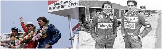 左图:塞纳赢下83年在银石的F3比赛,第二名的是布伦德尔 右图:布伦德尔与塞纳