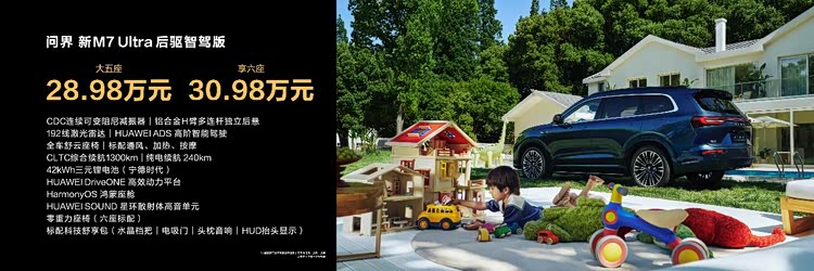 对了,也用一张图说一下问界新M7 Ultra的价格,:问界新M7 Ultra五座后驱智驾版28.98万元,问界新M7 Ultra五座四驱智驾版30.98万元。
