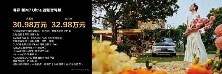 问界新M7 Ultra六座后驱智驾版30.98万元,问界新M7 Ultra六座四驱智驾版32.98万元。