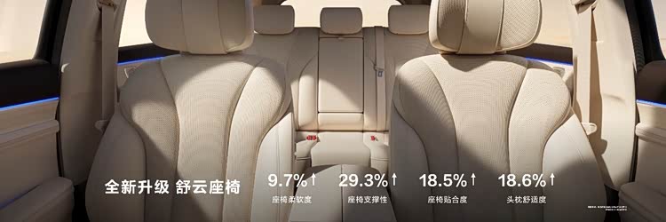 众所周知,座椅是人与车的重大交互节点,但是不知道为什么很少有厂家深入思考这其中的人因工程学(大概都去卷加速了吧)。于是你往往会听到有人评价,这车哪儿都好就是开久了哪儿都疼。综上所述,一辆有质感的车,首要痛点之一是给屁股和脖子提供情绪价值,毕竟老话说得好,屁股决定脑袋。大概是听到了这样的诉求,问界新M7 Ultra升级了舒云座椅,还提供了一系列诸如座椅柔软度、座椅支撑性、座椅贴合度和头枕舒适度的量化百分比。相信能算出这些数据的Nappa真皮和座椅头枕会带给用户更好的情绪价值。