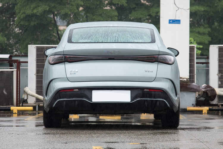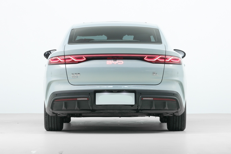 车尾部分,比亚迪秦L车尾使用了“中国结”样式贯穿式尾灯组,同时还取消了比亚迪车型惯用的“Build Your Dreams”标识(由可发光“BYD”英文车标进行取代)。另外,后包围底部还加入了大面积熏黑装饰件,进一步增强整车的运动氛围感。