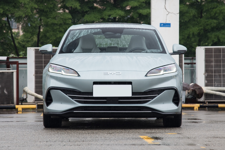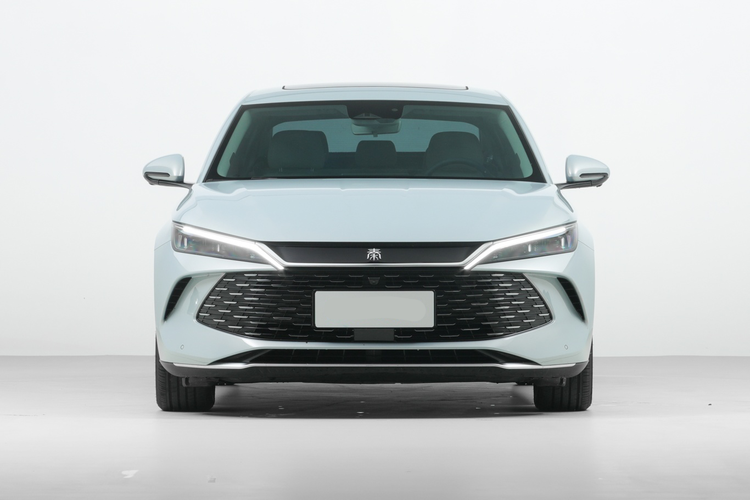 海豹06采用了比亚迪海洋系列的全新设计理念,第一眼看过去给人感觉很简约,前脸格栅加以镀铬饰条的装饰,提升了几分应有的时尚精致感,引擎盖上面的“BYD”字母标识,加上锐利有神的大灯组,以及前包围两侧黑化处理的散热口,从而使其整体看上去给人一种年轻且运动的视觉感受。