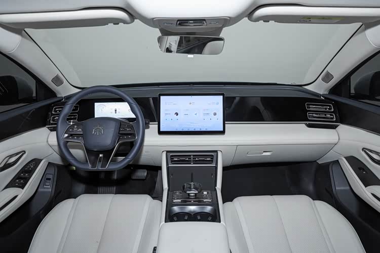 内饰设计方面,海豹06采用了家族式的设计风格,所见之处几乎看不到任何多余的实体按键,全液晶的仪表盘,加上悬浮式的中控大屏,提升了几分应有的科技感,此外,新车还配备有手机无线充电面板等实用配置,做工以及用料上,看上去也很扎实,大面积软性材质的包裹和填充,增添了几分应有的档次感,三幅式的多功能方向盘,加上圆形设计的换挡区域,以及细节之处的缝线处理,从而使其整体营造出了一种舒适且温馨的内饰氛围。