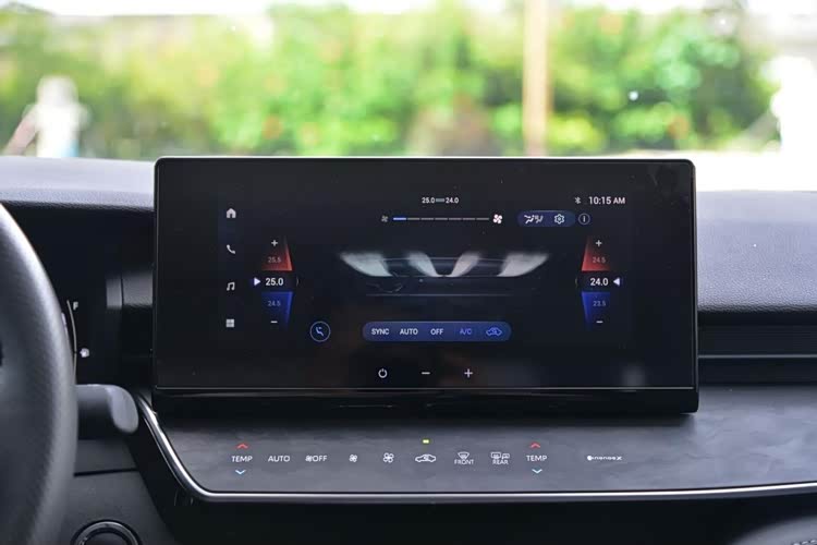 再来看内饰,英仕派的内饰采用了较多直线的设计手法,仪表台分别使用不同材质包裹,上层部分用的是软搪塑材料,中间部分则用的是软质材料,层次感挺清晰的。中控区域设计的挺简洁,只保留了和空调系统相关的实体按键,中间的旋钮还配备了一块屏幕,能显示时钟,空调等信息,看上去挺有质感的。10.2英寸全液晶仪表和12.3英寸中控屏幕都是全系标配,这套车机系统不仅支持车联网和远程升级,同时还支持苹果CarPlay和百度CarLife手机互联,满足日常使用没有任何问题。方向盘造型挺简单的,全系都采用真皮包裹,抓握感挺不错。