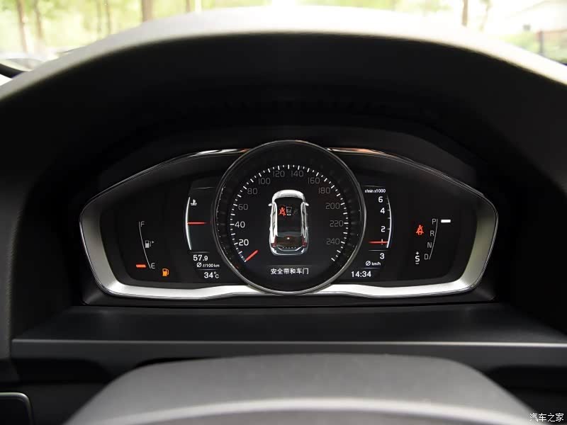 仪表盘设计很有意思,主面板为时速表,转速表则被安放到右侧,一开始没看出来还误以为是油表呢~可见沃尔沃并不想拿高转速来博取车主肾上腺素,这也从某种程度上强调了安全。