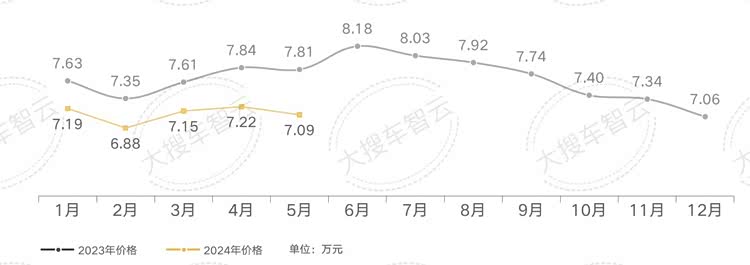 - 5月二手车整体市场平均成交价7.09万元,环比下降1300元,同比下降近7100元。