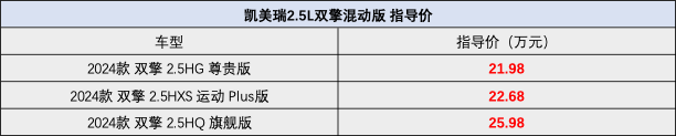 6月6日, 广汽丰田凯美瑞(参数|询价)的2.5L双擎混动版上市,共有3款车型,指导价区间为21.98万至25.98万。此前凯美瑞车型已上市了2.0L混动和2.0L自然吸气动力,本次发布的2.5L双擎混动车型将进一步丰富产品矩阵,带来更多选择。