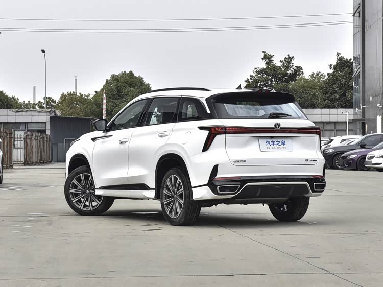 长安CS75 Plus进行了多次精心策划与升级,其中包括运动化包围设计更为精细且立体,此种创新的外观设计颇具前瞻性,顺应了新能源时代的审美潮流。从侧面欣赏,依然延续了悬浮式车顶的经典设计理念,车身线条流畅优雅,车顶行李架亦展现出时尚而富有艺术气息的熏黑美学效果。其所配备的18英寸轮毂呈现出沉稳有力的视觉感受。车尾部分同样采用了引人注目的贯穿式尾灯和双尾翼设计,此类设计风格在市场上早已广为人知。