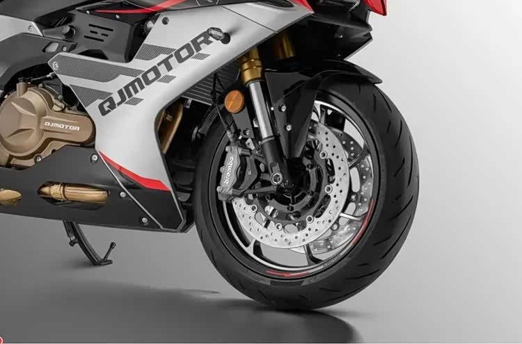 春风450SR颜值不错整车运动姿态和战斗元素极其突出,并且也会有不错的性能表现,最高设计时速可以达到190km每小时,百公里加速为4秒左右。而它配置上的表现也有丰富的一面,Brembo前四活塞卡钳、五寸曲面屏仪表、TCS等都有应用。