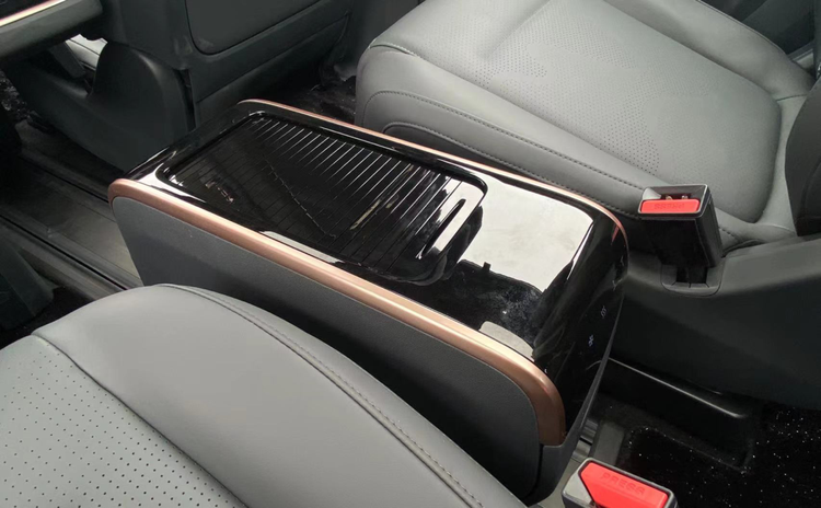 关于eπ008内饰的亮点,更多集中在第二排。首先,它拥有现在家用SUV流行的“冰箱、彩电”,而且它的冰箱还带前后滑移功能。