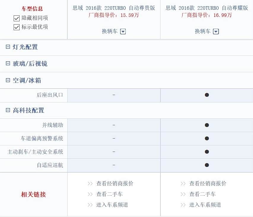 顶配尊耀版和次顶配尊贵版的差价是1.4万。配置上的差距只有区区5项
