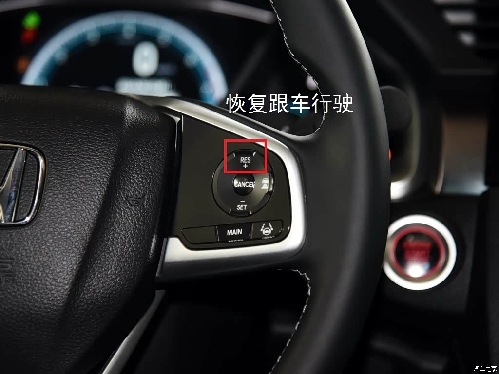 前车起步后只需轻轻点一下定速巡航的“RES+”键就可以继续跟随前进,全程无需脚下动作。