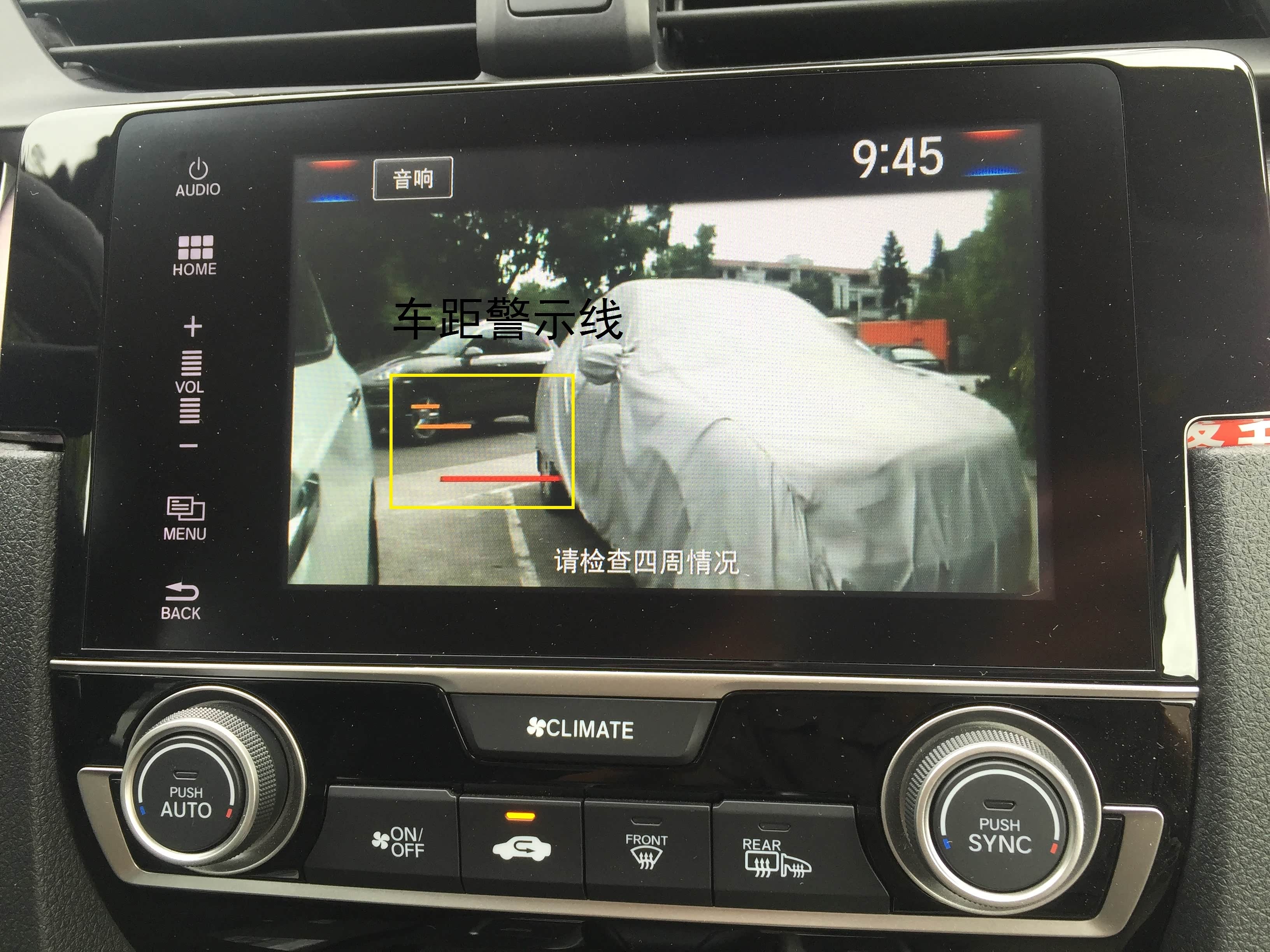 本田在宣传中说这个ACC带有城市低速跟车系统,我当时买的时候也是冲着这一点去的。当本车识别到前车并处于自动跟随状态时,前车缓慢刹车至停止,本车也能同步做到停车,最终两车距离大概有一个车位的长度。