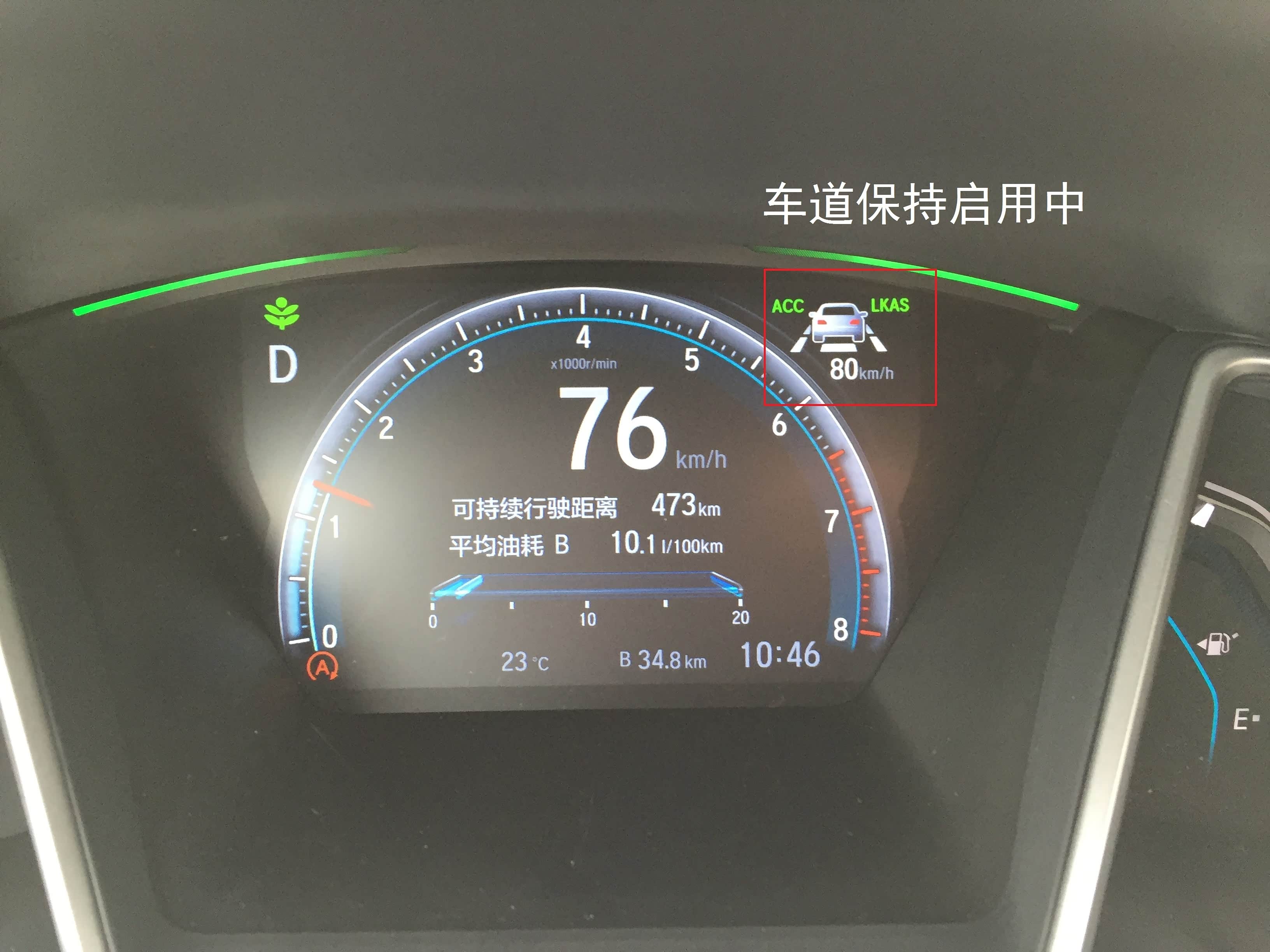 第二个功能就是车道偏离预警了。这个功能只要显示LKAS字母,不启用车道保持功能也是可以工作的