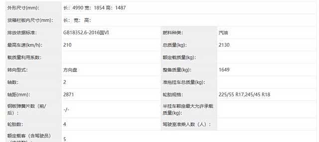 值得一提的是,此次参与申报的一共有两款型号,分别是黑色车身的FV7207NBDEG以及白色车身的FV7207NBDEB。对比现有信息来看,两者仅在整备质量和轮胎规格之间有区别,前者整备质量为1684,kg,后者为1649kg;轮胎则分为225/55 R17、245/45 R18和245/45 R18、245/40 R19可选。