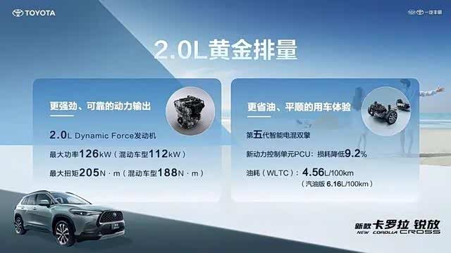动力单元部分,2024款一汽丰田卡罗拉锐放提供了2.0L自然吸气发动机+CVT变速箱、2.0L油电混动+E-CVT变速箱共两套动力单元,详细动力参数如下: