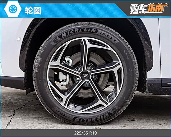 哪吒L提供了两种不同样式的轮圈,入门版车型匹配的是低风阻轮圈,轮胎规格为225/60 R18;其余车型则匹配的是风火轮造型轮圈,轮胎规格为225/55 R19。