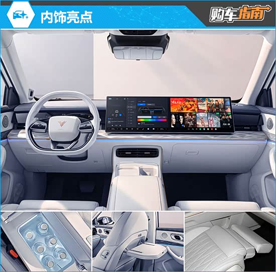 内饰方面,哪吒L延续了家族一贯的设计风格,配备了三辐式多功能方向盘、窄条辐全液晶仪表和悬浮式中控屏,同时顶配车型还配备有15.6英寸副驾娱乐屏,对于科技感的营造非常到位。配置方面,哪吒L全系标配了15.6英寸悬浮式中控屏、电子式怀挡换挡,同时顶配车型还独享了车载冰箱、后排小桌板等配置,提升了车内的高级感。
