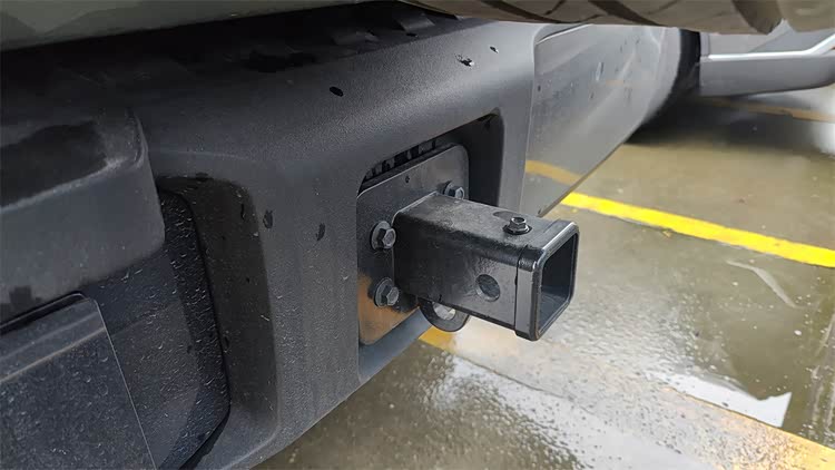尾厢的表现自然是不必担心的,不但容积足够大而且内部非常平整,只是后排座椅靠背没有电动调节,需要手动放倒。尾厢的壁板上带有220V的外放电接口,一个三相、一个两相,加上车外充电接口的V2L放电功能,户外露营基本够用了。车尾还带有原厂的拖车钩。尾门采用了电吸门,而且开启的时候还会带有后悬自动下降的便利装载功能。