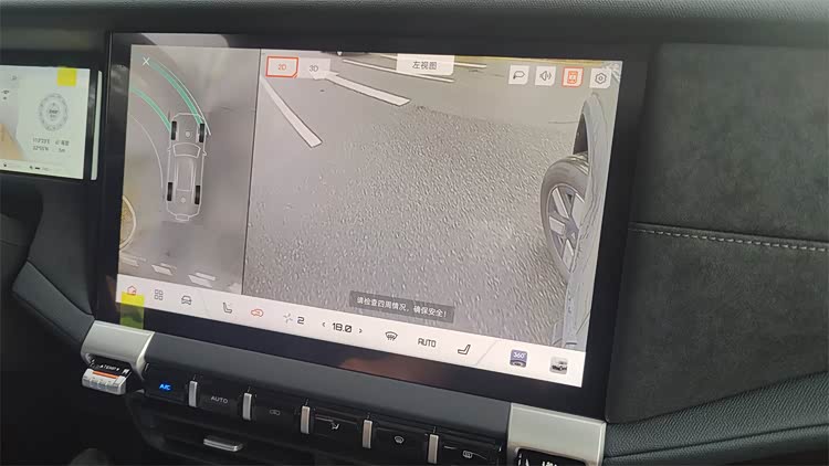 在驾驶辅助方面,G318显然也作出了一些取舍,或许是因为双电机四驱和主动悬架占用了主要成本的缘故吧。首先传感器用的还是单目的摄像头,所以只能提供基础的自适应巡航+车道居中的功能,没有高阶智驾。其次泊车方面也只有360全景辅助,没有自动泊车功能,这对于一台尺寸如此硕大的SUV,而且是顶配车型来说,有点可惜。