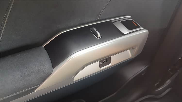 另外,后排充电的USB口被挪到了两侧的门板扶手上,这个小细节还是很贴心的。不过由此一来,就变成了两侧都只有一个Type-C口,而没有Type-A口,要知道如今还是有很多人在用着Type-A口的充电线,只能说有所取舍了。