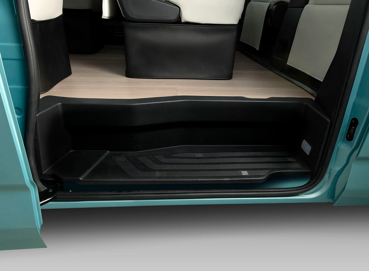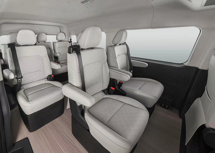 进入车内,新车的内饰同样令人眼前一亮。黑白双拼的配色方案显得简洁而大气,中控区域配备了一块屏幕,提升了科技感。此外,木纹地板和白色打孔座椅等配置也彰显了新车的品质感。值得一提的是,新车中门采用了下沉式踏步设计,将高度降低到409毫米,尾门的离地高度也仅为581毫米,极大地提升了乘客上下车的便利性。