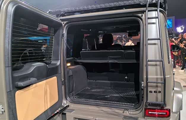 这款奔驰G级车型以其独特的方盒子造型为特色,这种设计与车辆的硬派定位相符。侧踏板为固定式设计,轮毂根据不同的车型有所不同,后备箱的宽度和深度允许装载较大的物品。