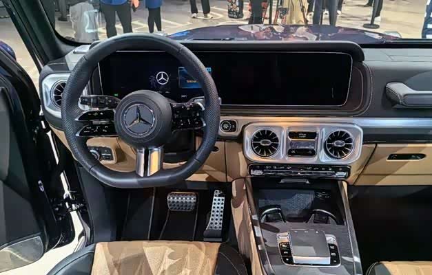 在内饰设计方面,新款奔驰G级延续了之前车型的风格,配备了连体式液晶屏幕。方向盘采用平底设计,内饰大量使用了金属装饰件,座椅采用菱形格设计,提升了质感,符合豪华车型的标准。