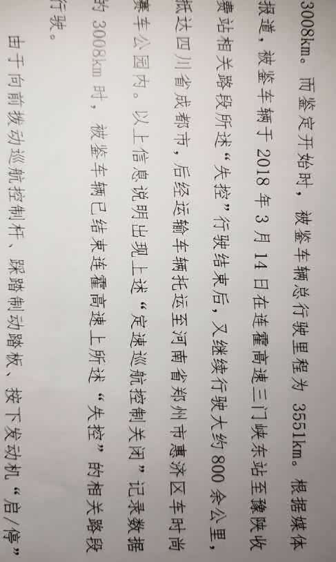 这次第三方机构出具的司法鉴定意见书表明,认定此次事件中的奔驰次车辆制动系统正常不存在故障情况,定速巡航系统正常不存在故障情况,故此最终认定奔驰车在行驶过程中不存在失控情况。