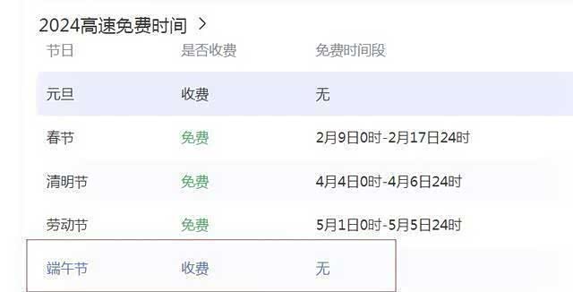 首先,我们需要明确的是,端午节并不在国家规定的免费通行节假日之列。根据《重大节假日免收小型客车通行费实施方案》规定,只有春节、清明节、劳动节和国庆节这四个国家法定节假日,以及当年国务院办公厅文件确定的上述法定节假日连休日,才会对7座以下(含7座)的载客车辆实行高速免费通行政策。而端午节并不在这个范围内,因此高速不免费是符合政策规定的。