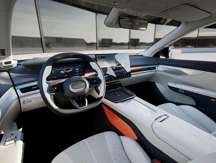 领克07EM-P的内饰设计以“轻盈”为主,提供灰调和白调两种色彩选择,并以深海蓝作为辅色,搭配金属饰件以及橙色点缀,时尚轻奢的即视感拉满。NAPPA真皮座椅的使用和仿麂皮的拼接工艺,精致化领克07EM-P在内饰细节上设计。方向盘采用了扁平化的设计,部分按键为触控式同时使用了怀挡设计,车内也给到了电子按键式的开门方式,同时车窗控制按键也是前后拨杆的形式。15.4英寸超清中控显示屏还可实现±15°度自由调节,搭载了Lynk Flyme Auto领克智能座舱系统,拥有在线导航、多媒体、自然语音识别等诸多功能,并可以与小米、VIVO、oppo手机与车机互通互联,如果是魅族手机,还可以实现无缝上车。此外,新车还将提供AR-HUD、256色氛围灯,以及包括50W无线充电和60W type-C双快充的共6个充电口。
