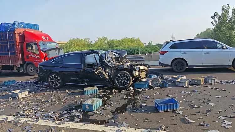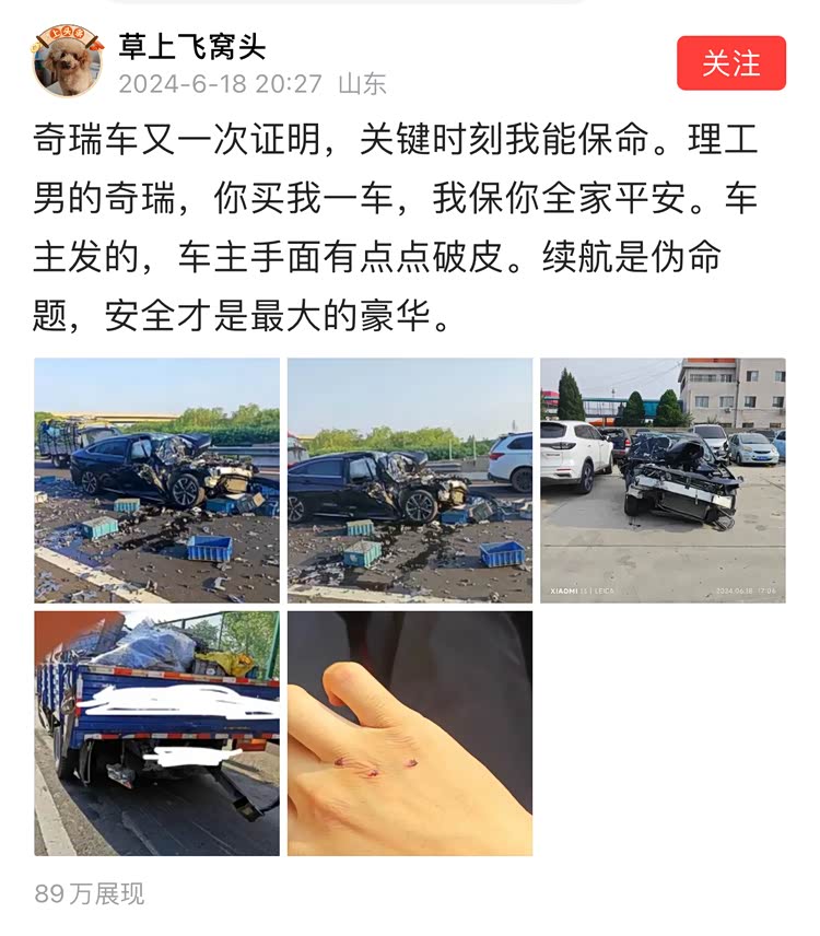 奇瑞艾瑞泽8高速事故A柱弯折