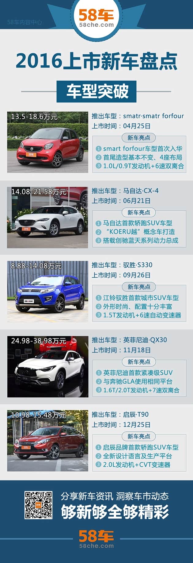 编辑粗略的统计了一下,今年上市的纯新车(原则上不包括中期改款,年度改款,新增车款等)已经有超过130款,逐一细说并不现实。所以编辑挑出了其中一些比较有代表性的车型单独列举,剩下的新车我们放在最后一页以表格形式汇总。