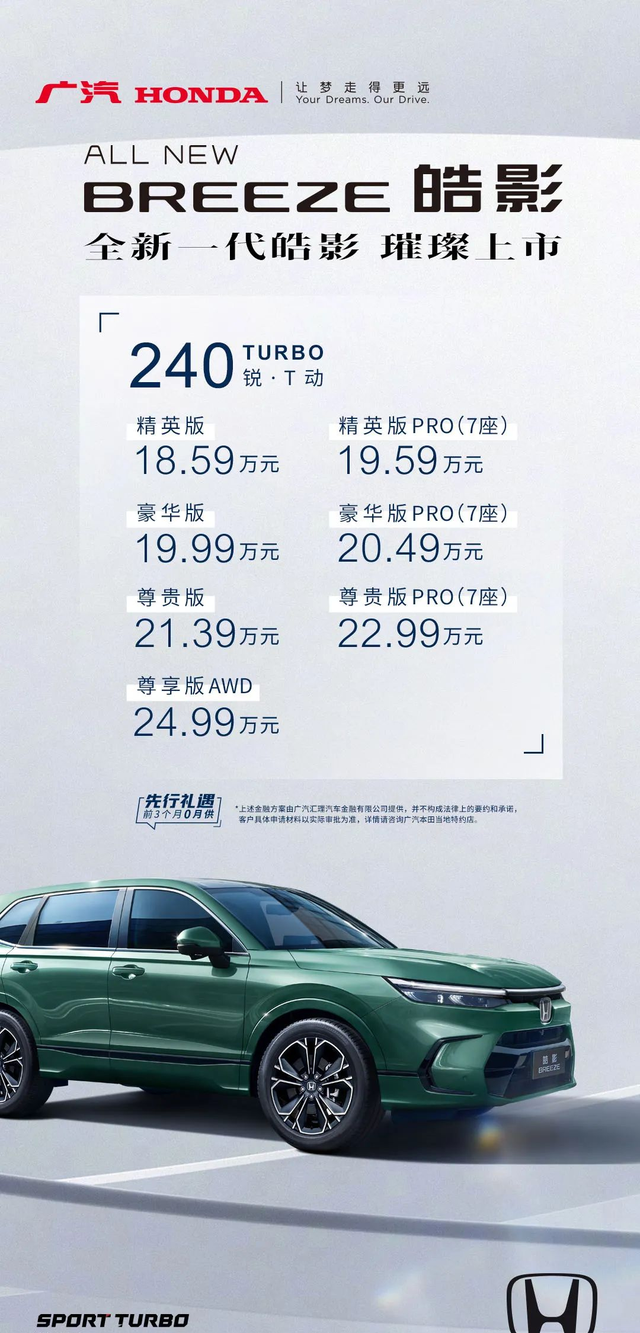 12月23日,广汽本田全新一代 皓影(参数|询价)上市,共推出7款车型,车型售价区间为18.59万-24.99万元。此次上新主要是对轴距进行了加长,并新增了7座版本可选。