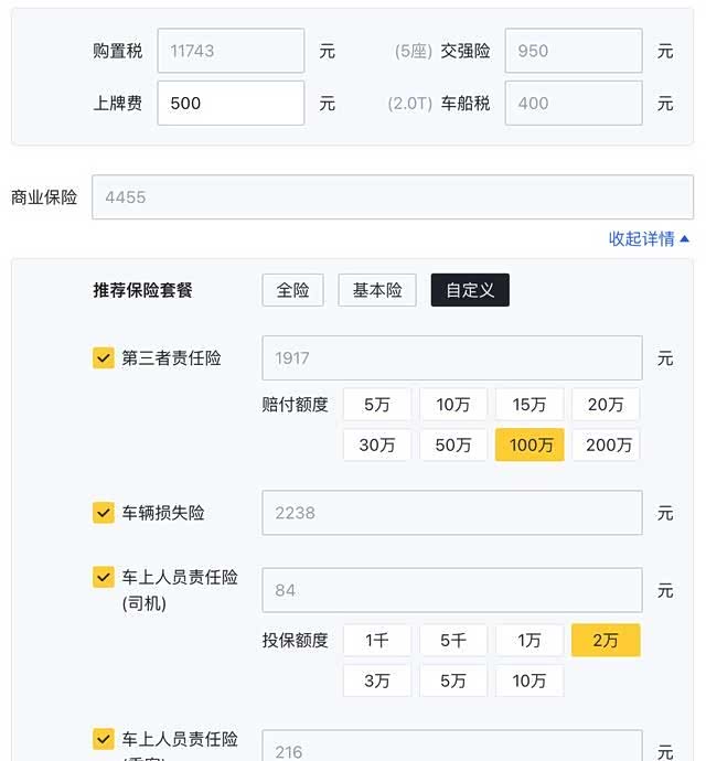 星悦L的保险费用主要包括车船税、交强险和商业保险。 其中车船税400元/年,交强险950元/年,商业保险4455元/年,其中100万元/年。 三者责任险、车辆损失险和2万车辆人员责任险(含驾驶员/乘客),按照行业惯例,第一年没有保险,第二年减少10%计算。 据测算,前三年保险费用约为15794元,平均每年约为5265元。