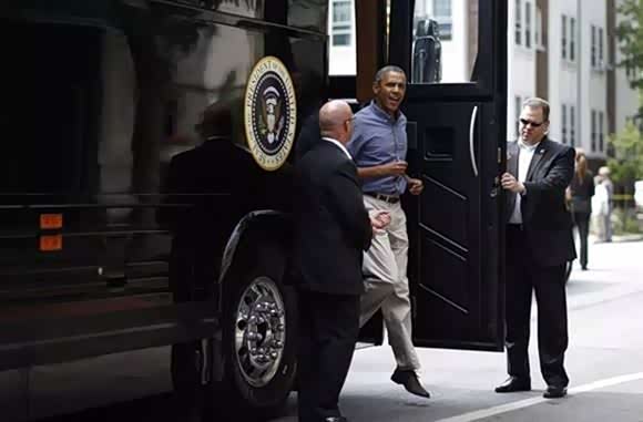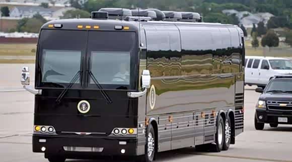 2010年,美国特勤局终于厌倦了每次都要租车、改装的繁琐程序,索性定购了两辆大巴,作为首脑人物的专用车辆,每辆花了约110万美元。