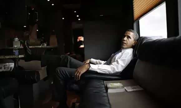 ▲奥巴马2008年参加总统竞选时,在特勤局提供的大巴里想心事