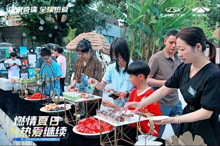 6月22日,“燃情夏日 热爱继续”—第二届奇瑞粉丝烟火烧烤节首站于天府之国-成都揭开夏日狂欢序幕,奇瑞联动全国十个大区与千余家经销商和万千用户的夏日狂欢盛会正式开启!当天,奇瑞汽车与西南大区的百余名用户朋友欢聚一堂,共享热烈滚烫的夏日生活,开启一场音乐、烧烤、啤酒交织的浪漫夜晚。