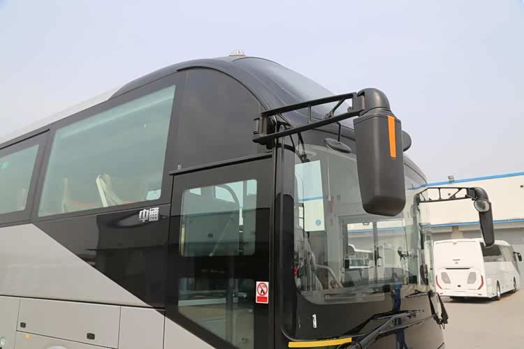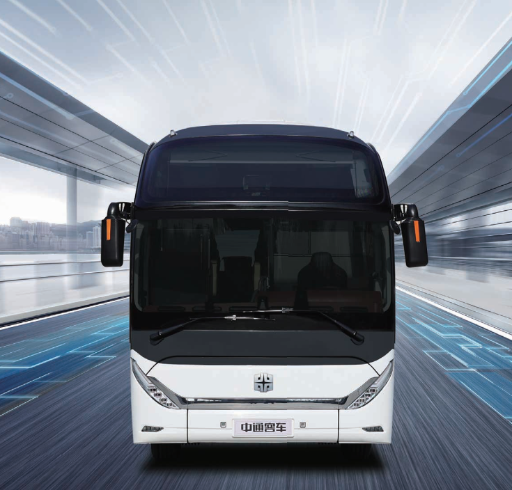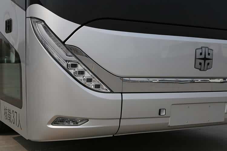 前脸设计简洁干练,采用蝶翼式设计。贯穿前脸的镀铬饰条宛若一个“聚宝盆”,“聚宝盆”中央承载着中通车标LOGO,不仅美观时尚,且寓意美好。连接的两侧车灯为矩阵式,方形头灯呈阶梯状排列布局,视觉和谐、新颖。整车采用低风阻设计,风阻系数降至0.32。同时,全车轻量化设计进一步优化,全承载式车身高强钢应用占比75%以上,整车更轻、更安全、更耐用。